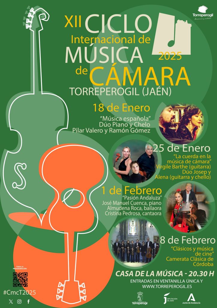 El Ciclo Internacional de Música de Cámara de Torreperogil se complace en anunciar su décima segunda edición, la cual se llevará a cabo los próximos sábados 18 y 25 de enero, así como el 1 y 8 de febrero, en la Casa de la Música a las 8:30 de la tarde.