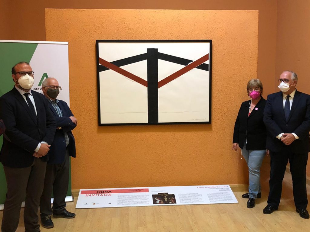 La obra pictórica en la producción de Nacho Criado no es muy prolija, por ello, la de la Universidad procedente de su Colección de Patrimonio Artístico viene a ser un caso relevante. La obra expuesta “A partir de Matthias Grünewald I” supone una clara revisión de la Crucifixión del Retablo de Isemheim, que llevara a cabo el pintor renacentista alemán entre 1512 y 1516. La tabla central sirvió de modelo para Criado, que depuró todo lo superficial para quedarse con el trazo, que por sí solo es capaz de contar la brutalidad de la escena. El expresionismo y el detalle de la pieza original son leídos por Criado desde una perspectiva minimalista.