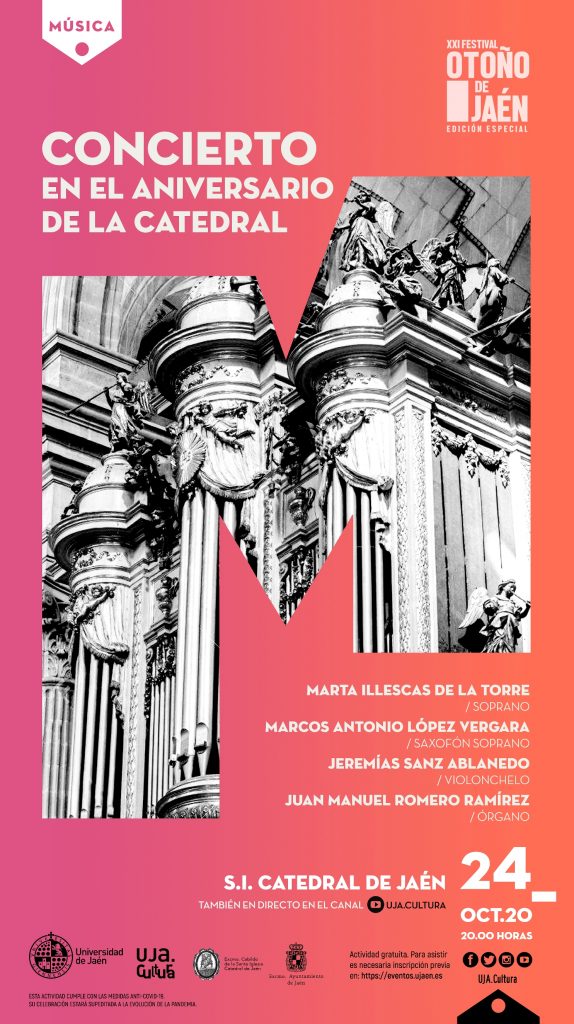 El XXI Festival de Otoño de Jaén arranca este sábado, 24 de octubre con un concierto en el aniversario de la Catedral de la mano de la Universidad de Jaén en una edición especial puramente jiennense que demuestra la apuesta del equipo de Gobierno del Ayuntamiento por la cultura en estos tiempos de pandemia.