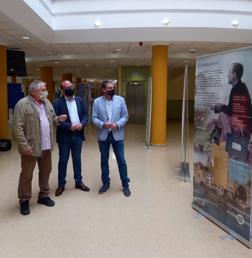 La exposición “Un rayo de poesía” divulgará la vida y obra del poeta universal Miguel Hernández entre estudiantes, profesorado y personal de la Universidad de Jaén (UJA), donde se podrá visitar esta muestra hasta el próximo 20 de octubre. El diputado de Cultura y Deportes, Ángel Vera, ha inaugurado junto al vicerrector de Proyección de la Cultura y del Deporte de la UJA, Felipe Serrano, esta exposición organizada por la Fundación Legado Literario Miguel Hernández, que promueve la Diputación Provincial.