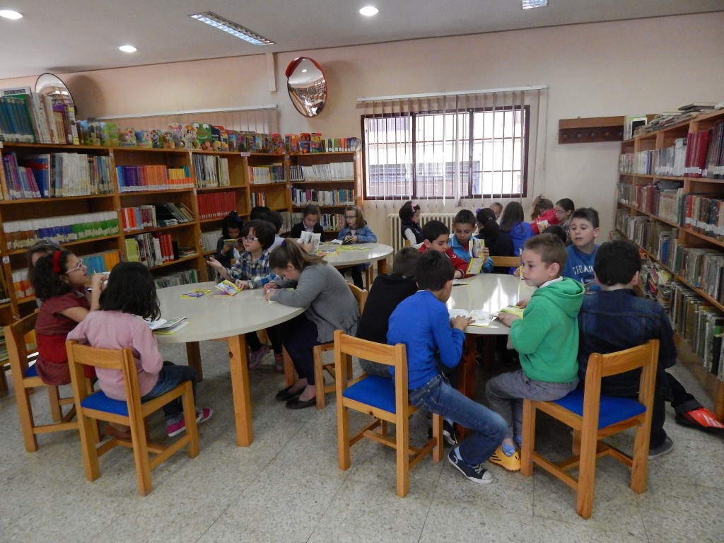 Alumnos de entre 5 y 8 años visitan la Biblioteca Municipal en la celebración del Día Internacional del Libro.