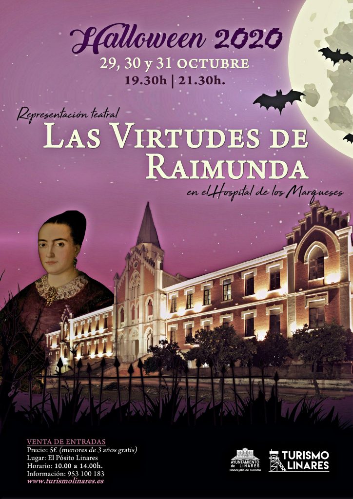 Este año, que cumple su quinta edición, será especial debido a la situación actual que estamos viviendo a causa de la pandemia del COVID-19. Por ello, las visitas teatralizadas cambiarán el concepto y se ofrecerá una actividad novedosa y diferente que atraerá a linarenses y foráneos. Se llevará a cabo una representación teatral llamada “LAS VIRTUDES DE RAIMUNDA”, obra de teatro escrita y dirigida por la historiadora y guía de turismo Selene Simón, donde los personajes más ilustres y fantasmagóricos del antiguo Hospital de los Marqueses de Linares contarán la historia de este imponente edificio linarense.