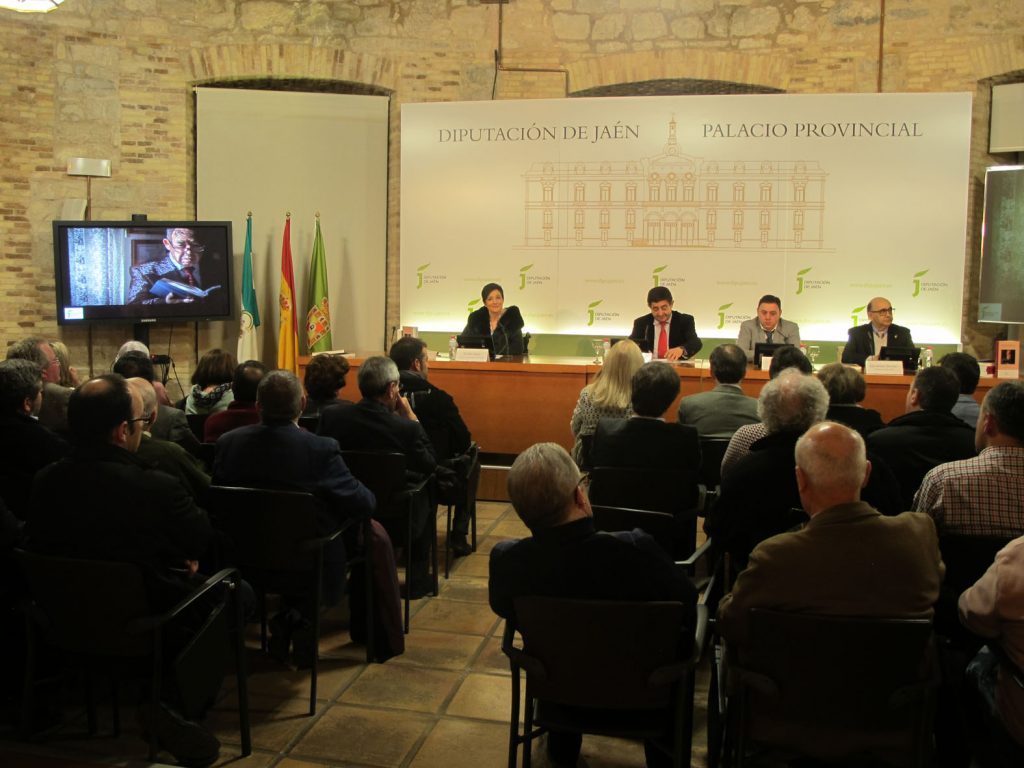La presentación de un libro biográfico sobre Vicente Oya, cronista oficial de la provincia de Jaén, fallecido en agosto de 2016, ha sido el eje central del homenaje que se le ha brindado esta tarde en el Palacio Provincial a quien también fuera presidente de Aprompsi, periodista, escritor y cronista de Cambil y Jaén. Familiares y amigos de Oya, así como representantes de diferentes instituciones y entidades ligadas a su figura, han llenado el Aula de Cultura de la Diputación en un acto en el que han participado el presidente de la Administración provincial, Francisco Reyes; José Manuel Troyano, cronista de Bedmar y Garcíez –autor de la biografía que ha editado el Instituto de Estudios Giennenses–; la presidenta de la Asociación de la Prensa de Jaén, Fátima Jerez; y Vicente Oya Jiménez, hijo del homenajeado.