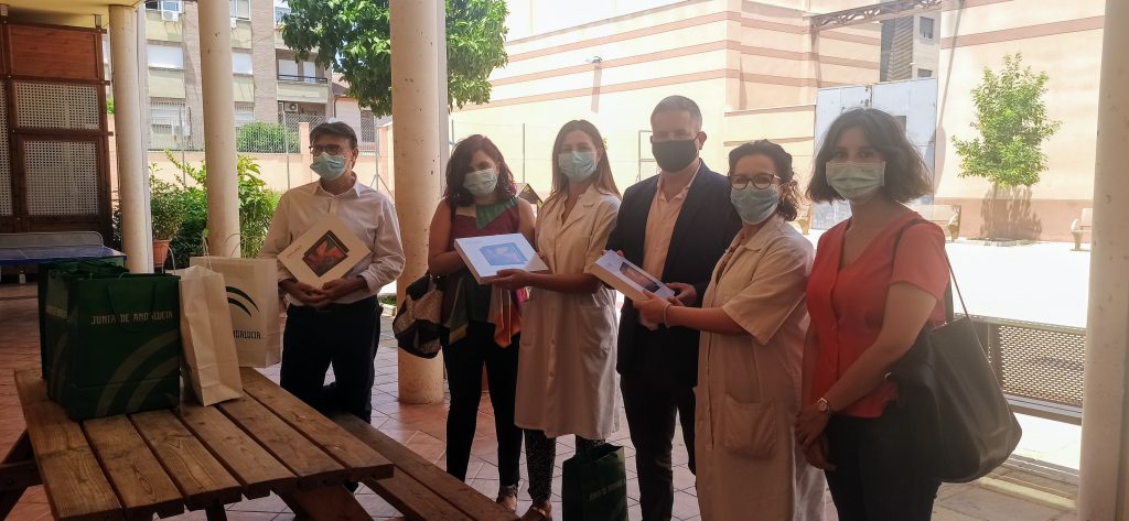 La directora general de Infancia y Familias de la Consejería de Igualdad, Políticas Sociales y Conciliación, Antonia Rubio, acompañada por el director general de Políticas Sociales, Francisco Vidal, y por el delegado territorial en Jaén, Antonio Sutil, ha hecho entrega en el Centro de Protección de Menores de Linares de 21 tablets para los usuarios de esta institución. En total, se han repartido entre los 3 centros de la provincia (San Juan de la Cruz, en La Carolina, Nuestra Señora de la Cabeza, en Linares y Carmen de Michelena, en Jaén) 56 dispositivos, donados por Unicef, con el objetivo de disminuir la brecha digital que afecta a uno de los colectivos de mayor riesgo y facilitar que puedan continuar con sus estudios pese a las circunstancias actuales.