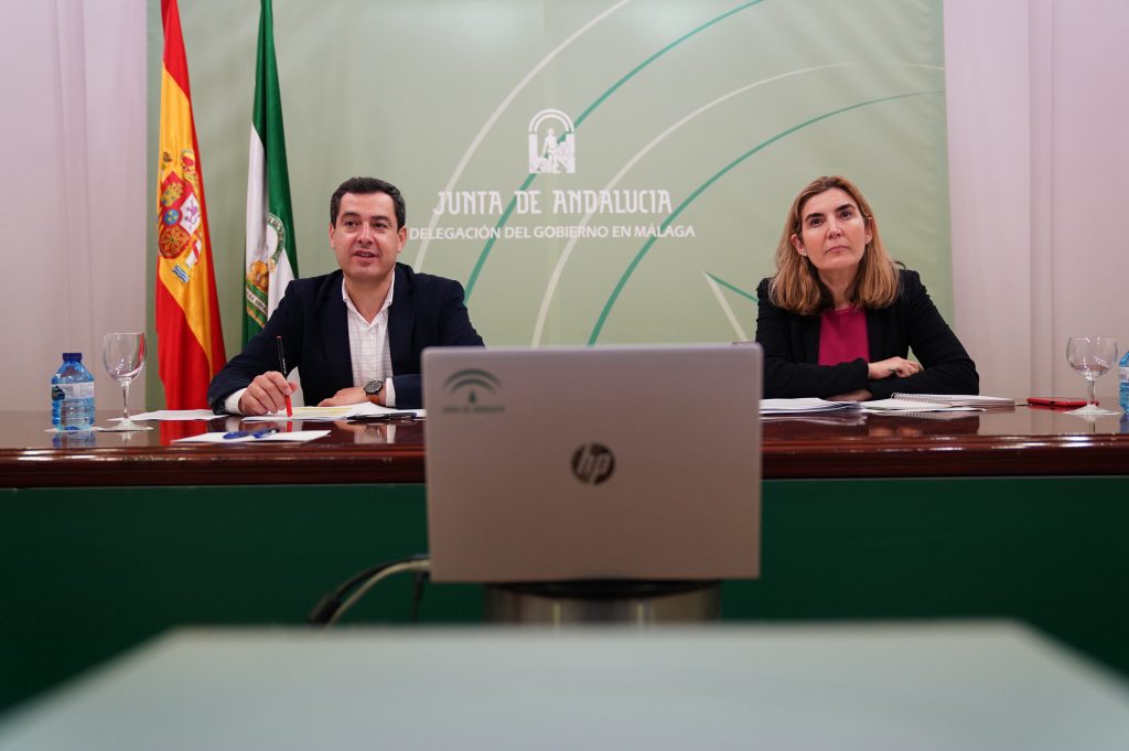El presidente de la Junta de Andalucía, Juanma Moreno, ha celebrado en Málaga una videoconferencia con siete autónomos andaluces a los que ha trasladado el apoyo de su Gobierno ante la crisis del coronavirus Covid-19. De esta manera, ha querido conocer de primera mano los problemas que este sector está encontrando desde que se decretara el Estado de Alarma en el país el pasado 14 de marzo.