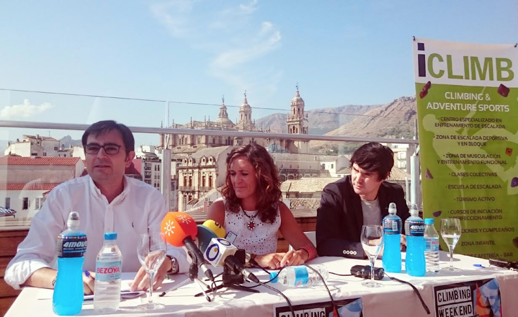 La fachada del Palacio Provincial de la Diputación de Jaén será de nuevo uno de los escenarios de las pruebas incluidas en el III Climbing Weekend “Ciudad de Jaén”, evento deportivo dedicado a la escalada en sus diferentes modalidades, que se desarrollará del 11 al 13 de septiembre próximos en la capital jiennense. El diputado de Cultura y Deportes, Juan Ángel Pérez, ha participado hoy junto a la concejala de Deportes y Turismo del Ayuntamiento de Jaén, Rosario Morales de Coca; y Carlos Gallego, miembro de la organización del evento, en la presentación de esta cita deportiva.