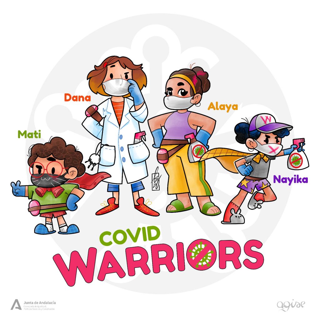 El Instituto Andaluz de la Mujer (IAM) y AGISE, la empresa que gestiona los recursos de acogida de Andalucía, impulsan la iniciativa ‘COVID Warriors’, que está basada en la creación de personajes de ficción como eje de este proyecto divulgativo y lúdico-cultural en los 34 centros de acogida durante el período de confinamiento por la alerta sanitaria y que plantea hacerse extensible durante el tiempo que requieran las medidas extraordinarias por el COVID-19, tanto en su diseño como en su ejecución. A este respecto, la directora del IAM, Laura Fernández, ha señalado que “esta propuesta, que se lleva a cabo en los centros de emergencias, casas de acogida y pisos tutelados, tiene tres propósitos esenciales: trasladar un mensaje de calma y positividad para hacer frente a la situación de alarma, difundir los protocolos sanitarios y de seguridad de una forma accesible y atractiva a las personas acogidas y mejorar el clima en los centros de acogida, poniendo especial atención en la población infantil”.