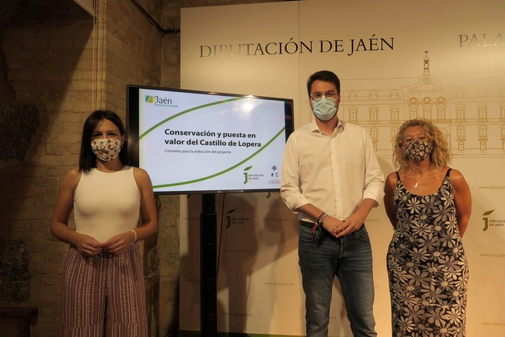 La Diputación de Jaén y el Ayuntamiento de Lopera han suscrito un convenio de colaboración mediante el cual, la Administración provincial aportará 18.000 euros para la redacción de un proyecto que recogerá distintas actuaciones destinadas a la recuperación y puesta en valor del Castillo de Lopera. El diputado de Promoción y Turismo, Francisco Javier Lozano, y la alcaldesa de este municipio, Isabel Uceda, han presentado este acuerdo que se centrará en la consolidación de la Torre de San Miguel y en la conservación de la muralla. “Aun no teniendo competencias en la conservación y mantenimiento del patrimonio cultural, que depende de otras administraciones a las que hacemos un llamamiento para que se sumen a la intervención necesaria para mantener y poner en valor este castillo, asumimos este primer paso con la redacción del proyecto de conservación de la Torre de San Miguel y de las murallas”, ha anunciado Francisco Javier Lozano.