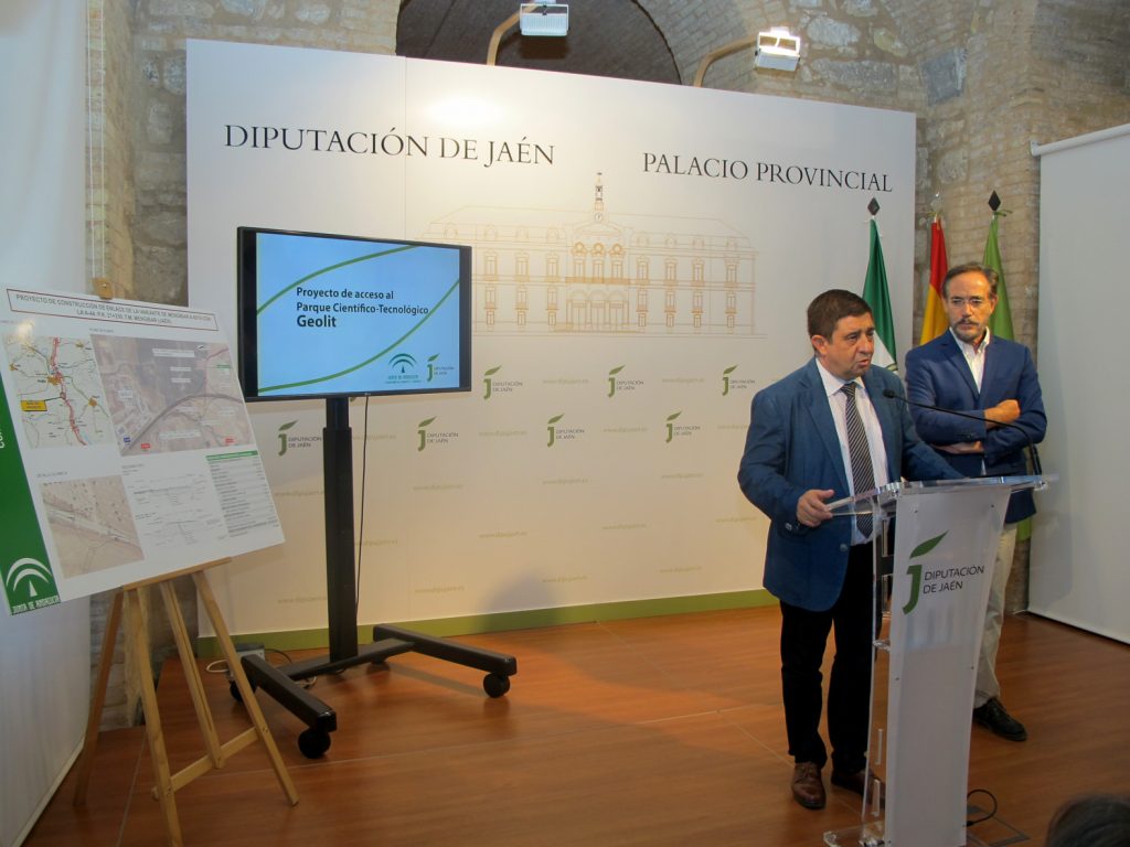 El presidente de la Diputación, Francisco Reyes, ha presentado junto al consejero de Fomento y Vivienda, Felipe López, el proyecto de obras para el acceso directo al Parque Científico-Tecnológico Geolit desde la A-44, “una reivindicación de la provincia, en general, y de las empresas instaladas en Geolit, en particular, que es una buena noticia para quienes hemos apostado por este parque que tiene que convertirse en un referente desde el punto de vista de la investigación, el empleo y la economía en la provincia”, ha destacado Reyes, quien ha agradecido el compromiso del Gobierno andaluz con esta actuación que supone una inversión de 5 millones de euros.