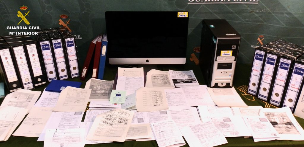 También cotejó las documentaciones intervenidas con los obrantes en las distintas jefaturas provinciales de Tráfico que las habían tramitado, descubriendo que las firmas de los contratos de compraventa y otros documentos necesarios para realizar la transferencia, sellados por distintas gestorías, habían sido falsificadas para simular la intervención de la persona que había entregado el vehículo en el desguace. En el transcurso de la investigación se detectó la falsificación de la firma de alguna persona ya fallecida