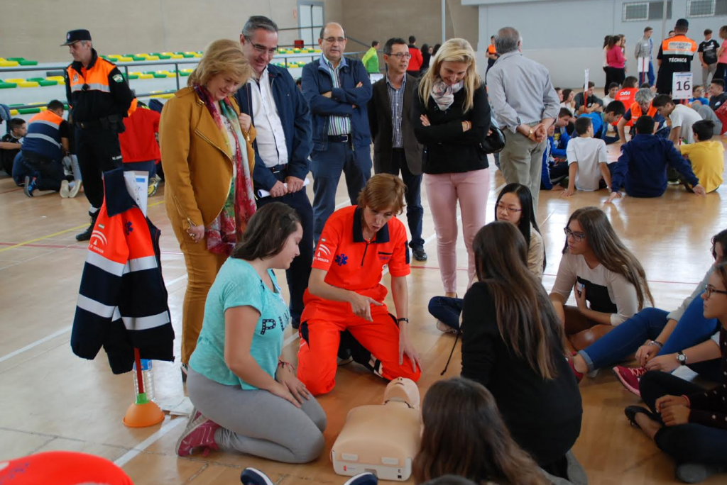 Un total de 970 alumnos de cinco centros de enseñanza de ESO y Bachillerato de Bailén han recibido hoy entrenamiento en reanimación cardiopulmonar por parte de profesionales de la Empresa Pública de Emergencias Sanitarias (EPES-061) de la Junta de Andalucía, en unas jornadas a las que ha asistido las delegada territorial de Igualdad, Salud y Políticas Sociales, Teresa Vega, con motivo del Día Europeo de la concienciación ciudadana ante esta patología.