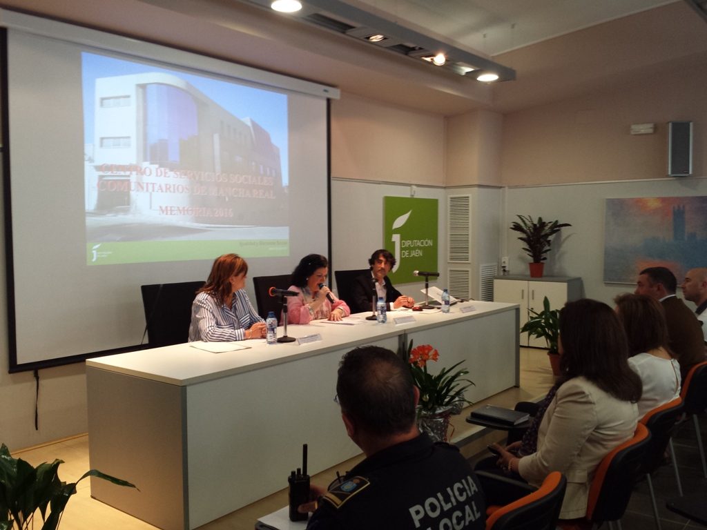 La diputada de Igualdad y Bienestar Social, María Eugenia Valdivielso, presenta junto a la alcaldesa de Mancha Real, María del Mar Dávila, la memoria de actividades del año 2016 desarrollada desde el Centro de Servicios Sociales Comunitarios ubicado en esta localidad. Este centro, que presta servicio a este municipio, así como a Pegalajar, La Guardia, Villatorres y Torres, es uno de los catorce centros que gestiona la Diputación para ofrecer asistencia social a la población de los municipios menores de 20.000 habitantes.