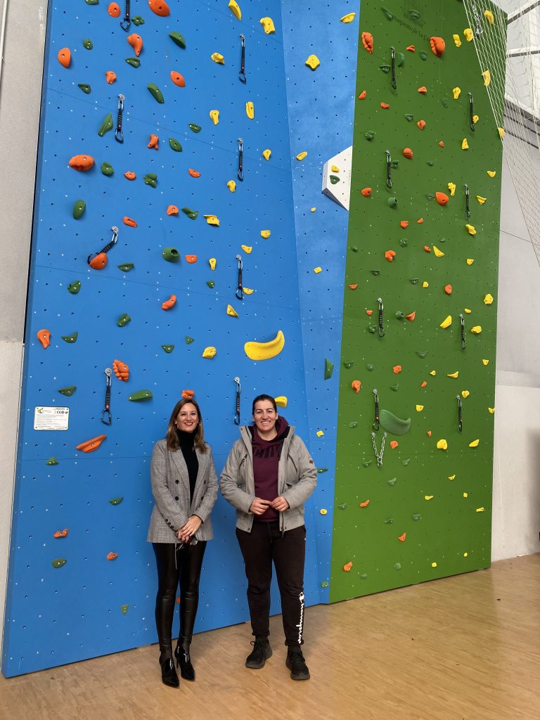 La alcaldesa, Yolanda Reche, y la concejala de Deportes, Carolina Rodríguez, han visitado el espacio para la escalada.