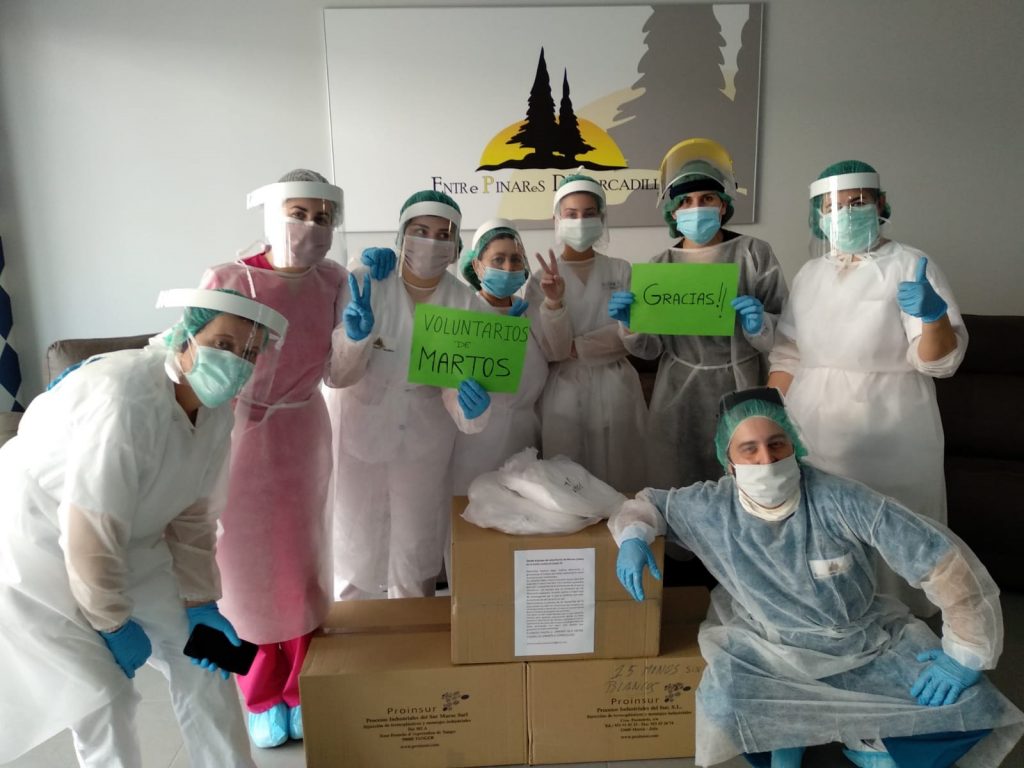 El Ilustre Colegio Oficial de Enfermería de Jaén y los responsables de la empresa Entrepinares del Mercadillo agradecen a la plataforma solidaria Somos Martos la entrega de material de protección. En concreto, los voluntarios han entregado 300 batas, 200 monos, 100 patucos y 1.500 mascarillas para la residencia de mayores de la institución colegial y también para otras residencia que gestiona la citada empresa.