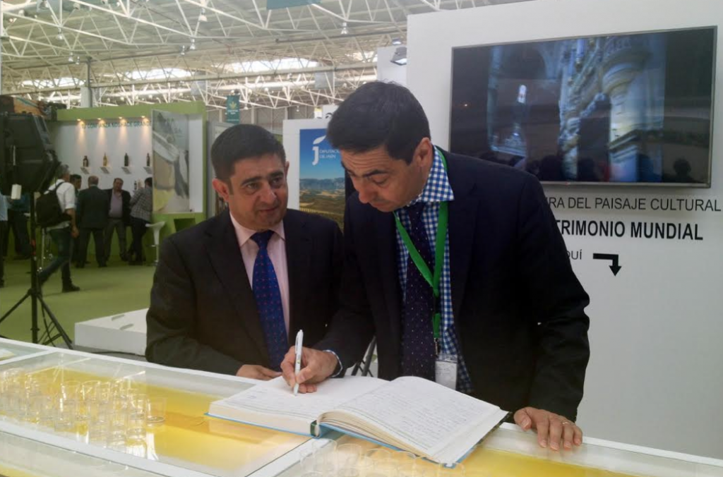 La candidatura del Paisaje Cultural del Olivar a Patrimonio Mundial suma apoyos en el marco de la celebración del XVII Feria Internacional del Olivar e Industrias Afines, Expoliva 2015. El director ejecutivo del Consejo Oleícola Internacional (COI), Jean-Louis Barjol, ha firmado hoy en el libro de apoyo a esta iniciativa puesto a disposición para visitantes y profesionales en el estand de la Diputación de Jaén en esta muestra.