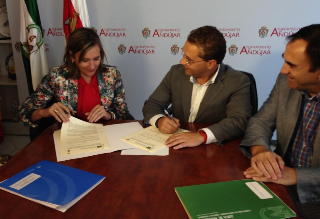 La firma de este convenio –a la que también ha asistido el delegado territorial de Economía, Innovación, Ciencia y Empleo, Antonio de la Torre– se enmarca en las políticas generales de empleo y desarrollo local del Ayuntamiento de Andújar, a través de su Concejalía de Promoción Económica, que viene apoyando y contribuyendo a la implantación de todo tipo de programas que ayuden al fomento y al desarrollo de iniciativas empresariales, así como en el VII Acuerdo de Concertación Social, que prevé como medida de modernización y cambio estructural de la economía andaluza, el desarrollo empresarial y la innovación a través del refuerzo de los instrumentos que contribuyan a la incorporación permanente de nuevas empresas, favoreciendo, con medidas de apoyo financiero y de impulso de la actividad económica en Andalucía, la creación de un tejido empresarial estable que genere riqueza y empleo de calidad.