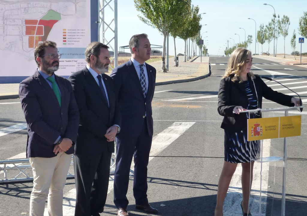 La directora general de SEPES, Lucia Molares, acompañada por el alcalde de Guarromán, Alberto Rubio, ha presidido hoy un acto institucional para impulsar las ventas de las parcelas de la 2a fase del polígono industrial “Guadiel” en Guarromán (Jaén).