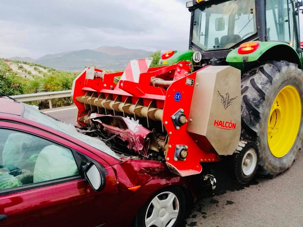A las 07:56 horas de hoy, se ha desplazado un Furgón de Salvamentos Varios (FSV) y seis bomberos hasta el kilómetro 53 de la A-316, al ser alertados por el 112 de un accidente de circulación entre un turismo y un tractor.
