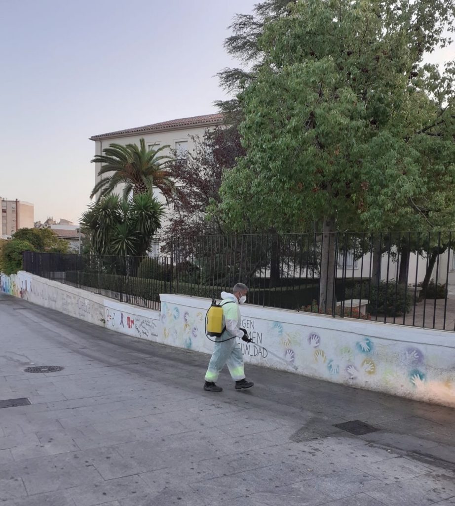 El área de Servicios Públicos del Ayuntamiento de Jaén, a través de la empresa concesionaria de la limpieza, FCC, ha puesto en marcha un plan de desinfección diario en el entorno de los centros escolares tanto públicos como concertados como medida de seguridad e higiene complementaria de las que los colegios e institutos han acometido tanto a la entrada y a la salida de los mismos.
