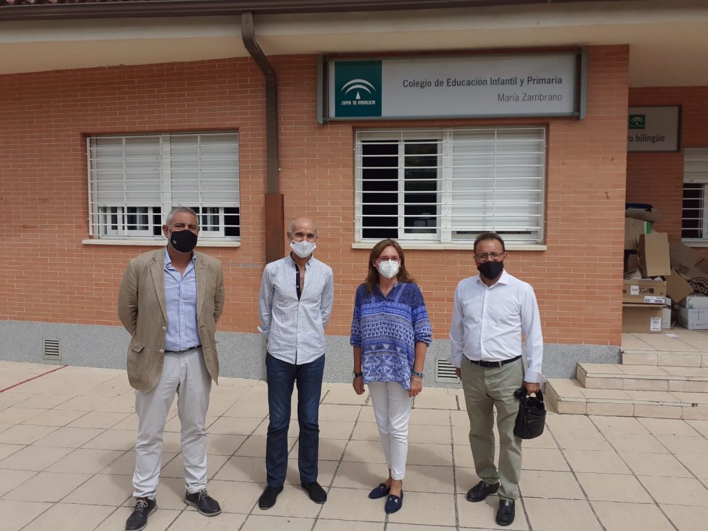 Los concejales de Educación y Seguridad Ciudadana, Francisco Díaz y Miguel Castro, han visitado hoy a la comunidad educativa del Colegio de Infantil y Primaria “María Zambrano” de la capital para conocer la implantación de las medidas y protocolos de organización del centro y seguridad anti-covid. Díaz ha destacado el esfuerzo que el colectivo está haciendo para dar normalidad a la vuelta al colegio y que los escolares perciban sus clases y espacios comunes como lugares seguros.