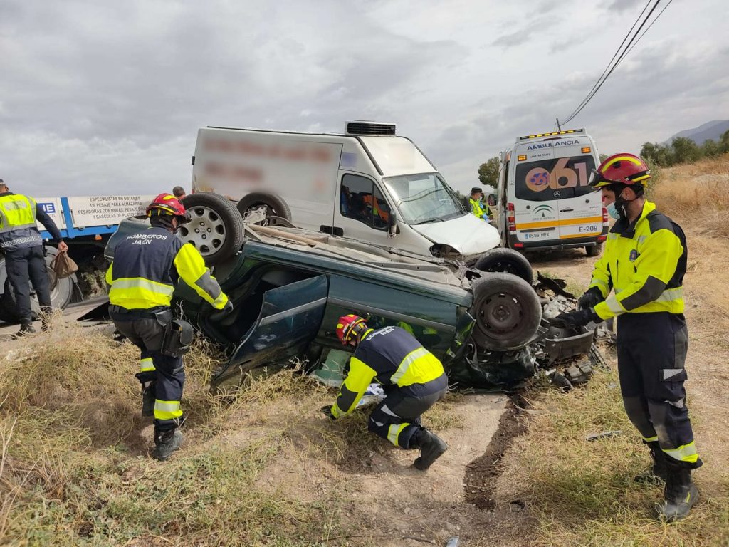 Cuando llegaron al lugar, los dos ocupantes atrapados de un turismo con vuelco total ya se encontraban fuera del mismo y se le practicaron los primeros auxilios hasta la llegada del personal sanitario del 061. En esta intervención colaboraron agentes de la Guardia Civil.