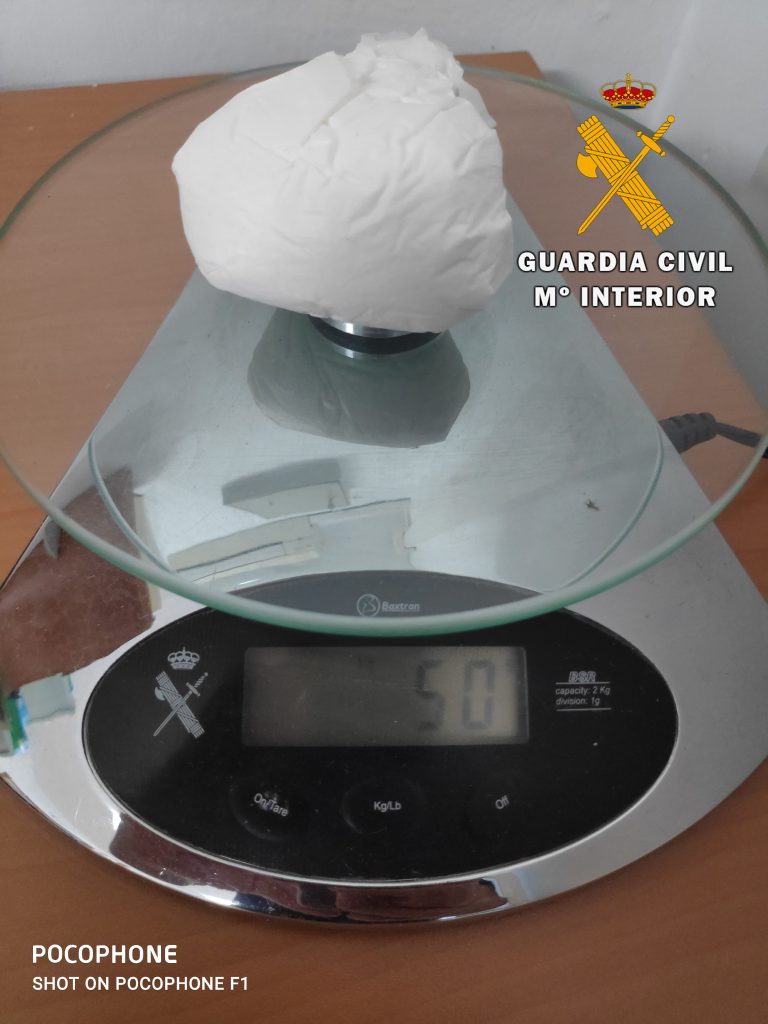 Ante la actitud nerviosa que presentaba el ocupante durante la identificación, los componentes del Cuerpo, procedieron a  realizar una inspección mas exhaustiva, localizando oculta en el interior de la guantera del vehículo, una bolsa precintada, la cual contenía 50 gramos SPEED (droga sintética compuesta a base de anfetaminas).