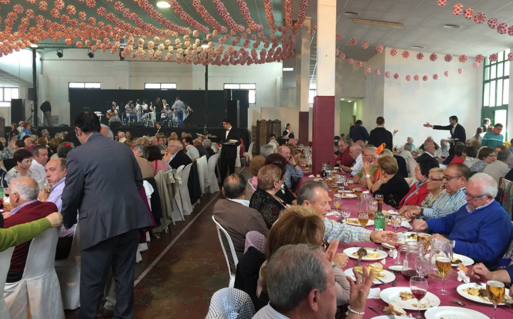 El homenaje que tradicionalmente se rinde a las personas mayores durante la Feria de Mayo se ha celebrado este mediodía en la Caseta Municipal, en la que han participado alrededor de 300 personas. Además, el encuentro ha estado amenizado por el grupo rociero ‘Aires de la Loma’.