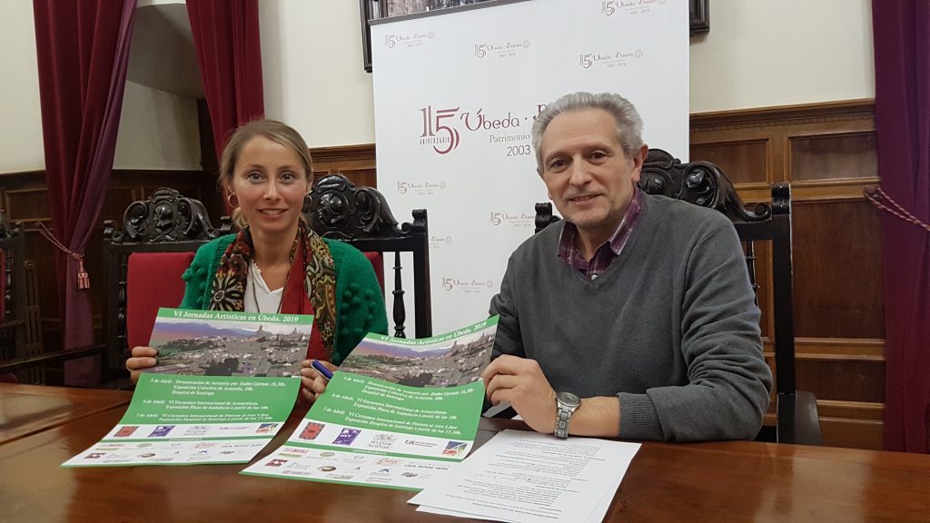 La sala de Comisiones del Ayuntamiento de Úbeda ha acogido esta mañana la presentación de las VI Jornadas Artísticas en Úbeda, organizadas por la Asociación Espacio Arte Vandelvira, Winsor&Newton, en colaboración con la Agrupación de Acuarelistas de Andalucía y la Concejalía de Cultura del Ayuntamiento de Úbeda, que tendrán lugar del 5 al 7 de abril. Al acto de presentación han asistido Pedro Vera, presidente de la Asociación Espacio Arte Vandelvira, y la concejala de Cultura, Elena Rodríguez.