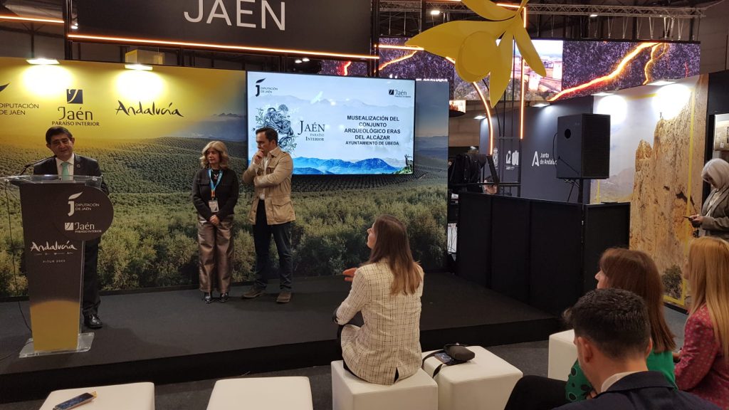 La celebración de la Feria Internacional de Turismo, Fitur 2025, ha sido escenario de la presentación del proyecto de musealización del yacimiento de las Eras del Alcázar de Úbeda, impulsado por el Ayuntamiento de esta localidad. El presidente de la Diputación de Jaén, Paco Reyes, acompañado por el diputado de Promoción y Turismo, Francisco Javier Lozano, ha participado junto a la alcaldesa de este municipio, Antonia Olivares, en la presentación de este proyecto “con el que se da un paso más en la puesta en valor de este enclave, con el objetivo de que sea más apreciado por los propios ubetenses y también por los visitantes y se posicione como uno de los principales atractivos de esta ciudad”, ha señalado Reyes, para remarcar el trabajo que viene desarrollando el consistorio ubetense en la puesta en valor de este yacimiento y del patrimonio histórico-artístico de esta localidad.