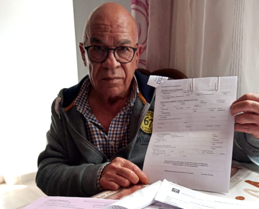 Después de muchas quejas y llamadas telefónicas, esta semana Pascual ha vuelto a sufrir hemorragias provocadas por su enfermedad, una espera para su intervención que teme “sea demasiado tarde”, siente que lo están “dejando morir” y lo único que pide es que lo deriven a un hospital donde pueda ser atendido y operado si aún está a tiempo.