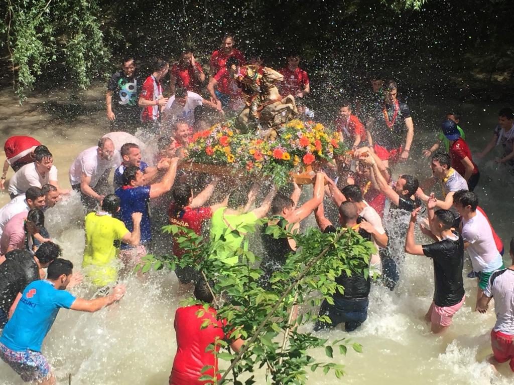 La fiesta oficial del 1 de mayo, comienza con la bajada en procesión de la imagen al santuario, cerca del Puente de la Cerrada en la margen izquierda del Guadalquivir, donde se le ofrenda y recibe la bendición en una misa multitudinaria.