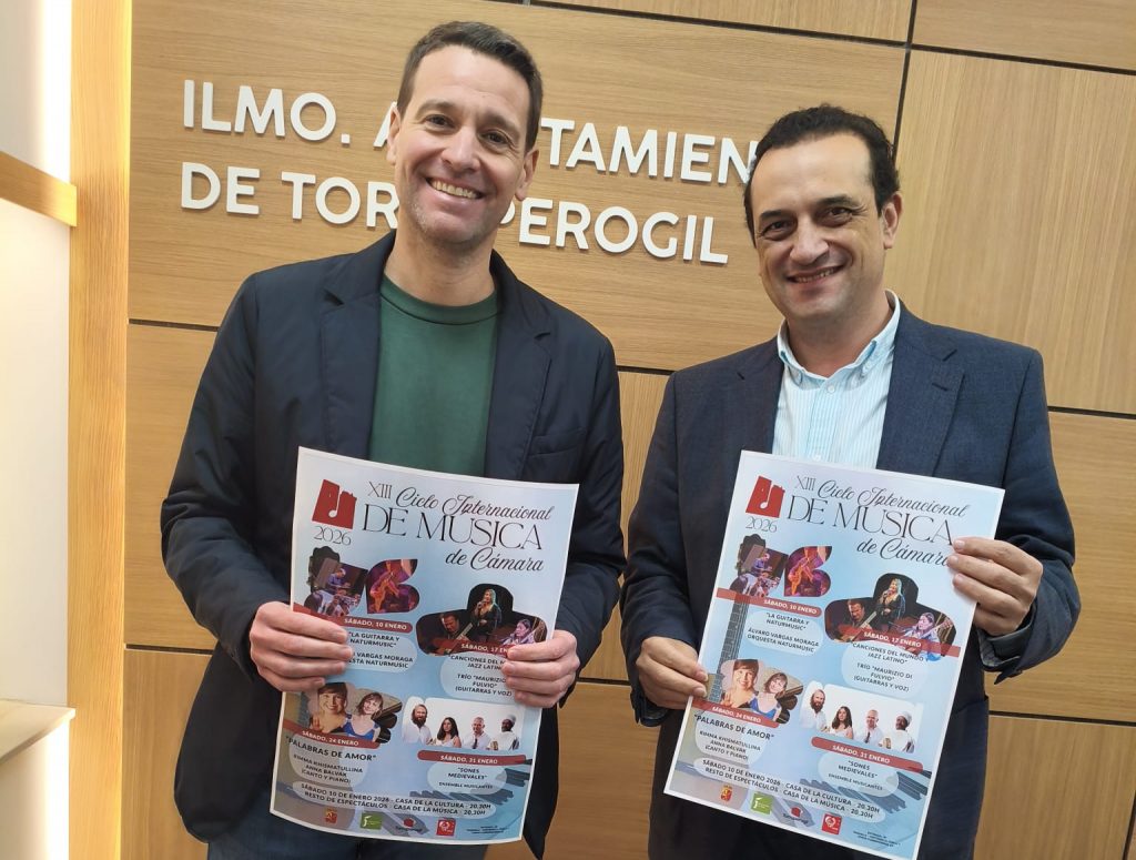 El alcalde de Torreperogil, José Ruiz Villar, junto al director del Ciclo Internacional de Música de Cámara, Enrique Muñoz, ha presentado hoy en rueda de prensa la programación del XIII Ciclo Internacional de Música de Cámara, una de las citas culturales más consolidadas y prestigiosas del calendario cultural del municipio, que se celebrará durante el mes de enero de 2026.