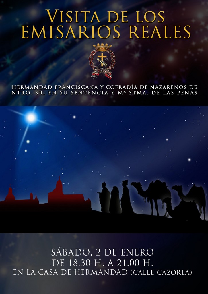 Esta tarde, apartir de las 18:30 horas, en la sede de la Hermanda de La Sentencia de Úbeda, los Emisarios Reales recibirán a todos aquellos niñosyniñas que quieran dejarle sus peticiones.