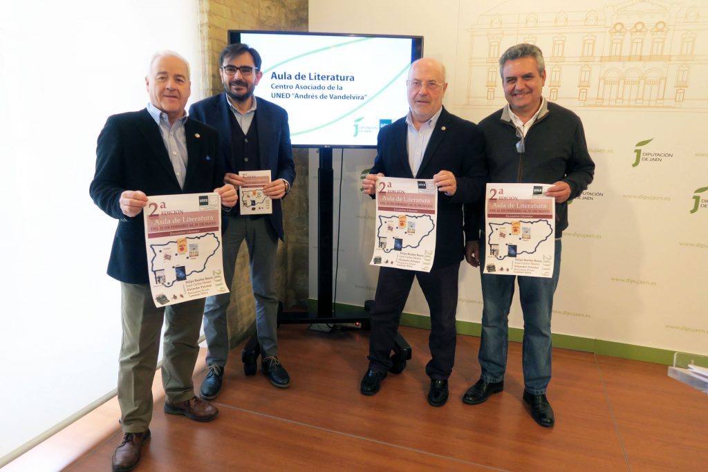 El Centro Asociado de la UNED en Jaén “Andrés de Vandelvira” pone en marcha la segunda edición de su Aula de Literatura, un programa que incluirá hasta finales de mayo cinco encuentros literarios con autores de renombre para dialogar sobre una de sus obras. El diputado de Cultura y Deportes y presidente de la junta rectora de este centro asociado, Juan Ángel Pérez, ha presentado este programa junto al director del centro, Andrés Medina; y Manuel Valdivia, profesor y coordinador de esta iniciativa abierta tanto a alumnado de la UNED como a cualquier persona interesada en asistir.