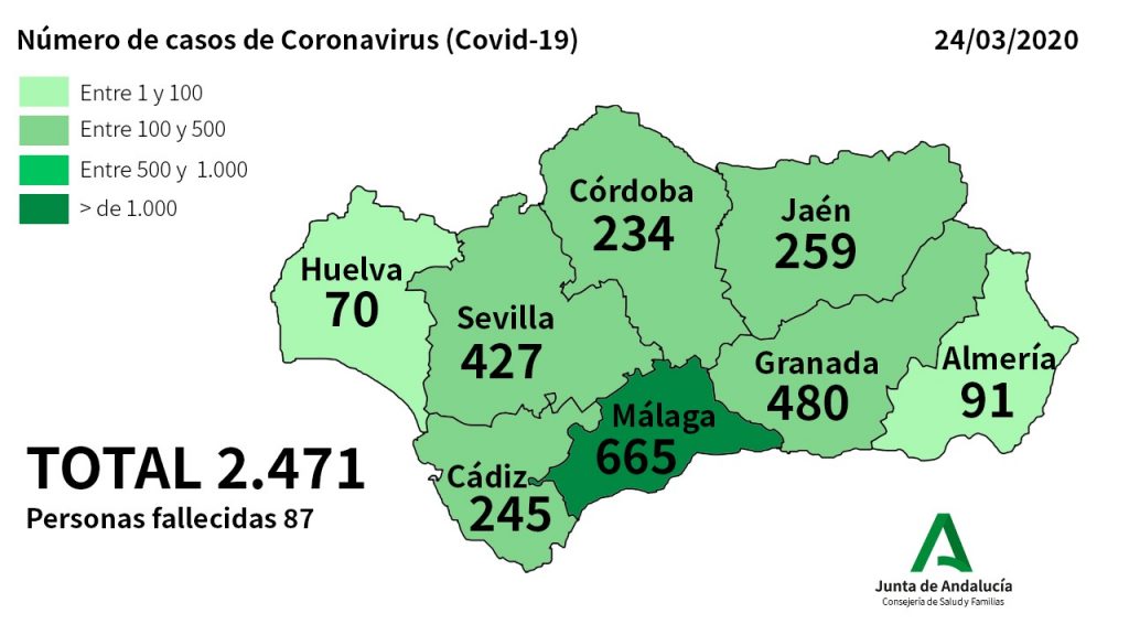 La Consejería de Salud y Familias informa que se han confirmado en Andalucía 510 nuevos casos de Coronavirus en las últimas horas. Así, el número total de afectados en Andalucía asciende a 2.471.