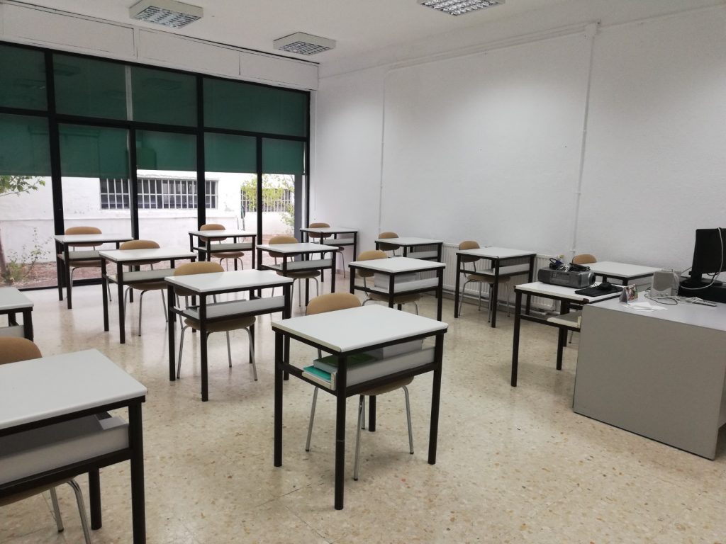 En el Centro Público de Formación para el Empleo de Linares, previamente a la desinfección, se ha realizado una limpieza exhaustiva de aulas, talleres, baños, pasillos y resto de estancias. Se han reacondicionado las aulas, incluso algunas se han trasladado, para que el alumnado mantenga siempre las distancias de seguridad en sus zonas de trabajo. Es el caso de la clase del curso de Montaje y reparación de sistemas microinformáticos, que con la nueva adaptación solo podría albergar a 7 alumnos, y se ha ubicado en un antiguo taller de electricidad, que se está remodelando para que puedan caber en óptimas condiciones los 15 alumnos, más su monitor.