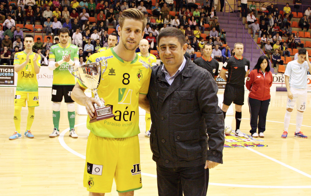 El presidente de la Diputación Provincial de Jaén, Francisco Reyes, ha hecho entrega del VI Trofeo al Mejor Jugador de la temporada del Jaén Paraíso Interior, que organiza la revista Punto Redondo, al jugador Jordi Campoy, un acto que se ha llevado a cabo durante los prolegómenos del último partido de la presente liga, que el conjunto jiennense ha empatado a 5 con el Santiago Futsal.