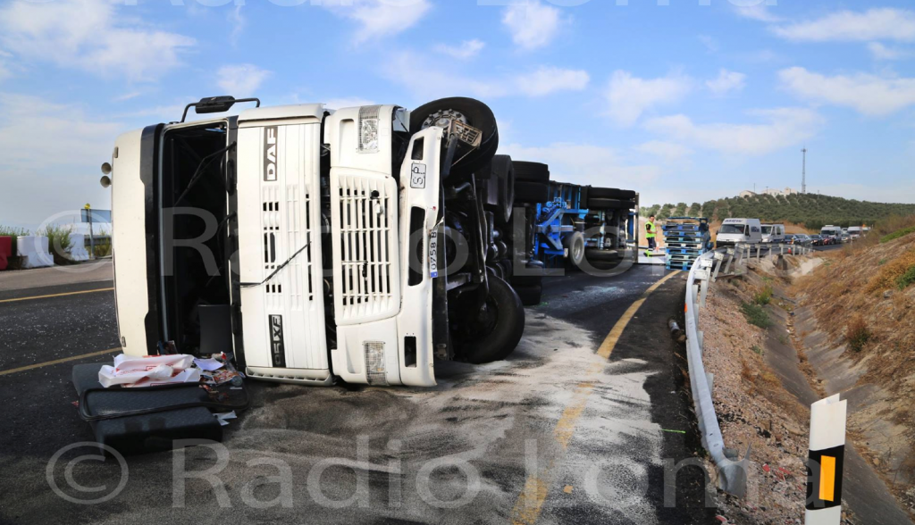 Un camión ha volcado este viernes en la N-322, a la altura del municipio jiennense de Torreperogil, en sentido Villacarrillo, quedando atravesado en la vía y cortando el tráfico de la misma, según ha informado a Radio Loma fuentes del Servicio de Emergencia del 112.